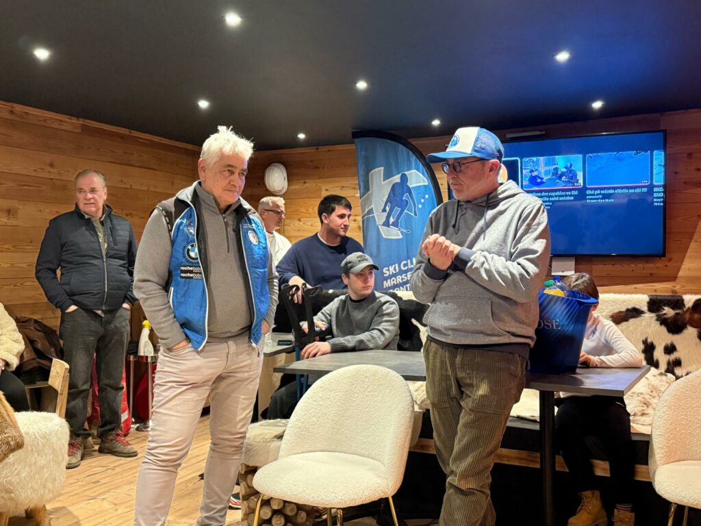 A l’initiative de quelques parents impliqués, nous avons débuté la saison de ski par une soirée festive afin de réunir tous nos parents, nos partenaires et les institutions locales. Celle-ci a été précédé par une petite réunion informelle à laquelle il a été, présenté la saison 2026, rappelé les autres activités du club et annoncé le projet de mutualisation de moyens avec le club « Ski Académie » avec qui nous avons une longue histoire commune et aussi fait un point sur l’organisation de notre Grand Prix. Nous avons rappelé que nous avions des sportifs membres des équipes de France, Ludivine TOCHE, Joris GAMBIN et Pierre MANFREDI.