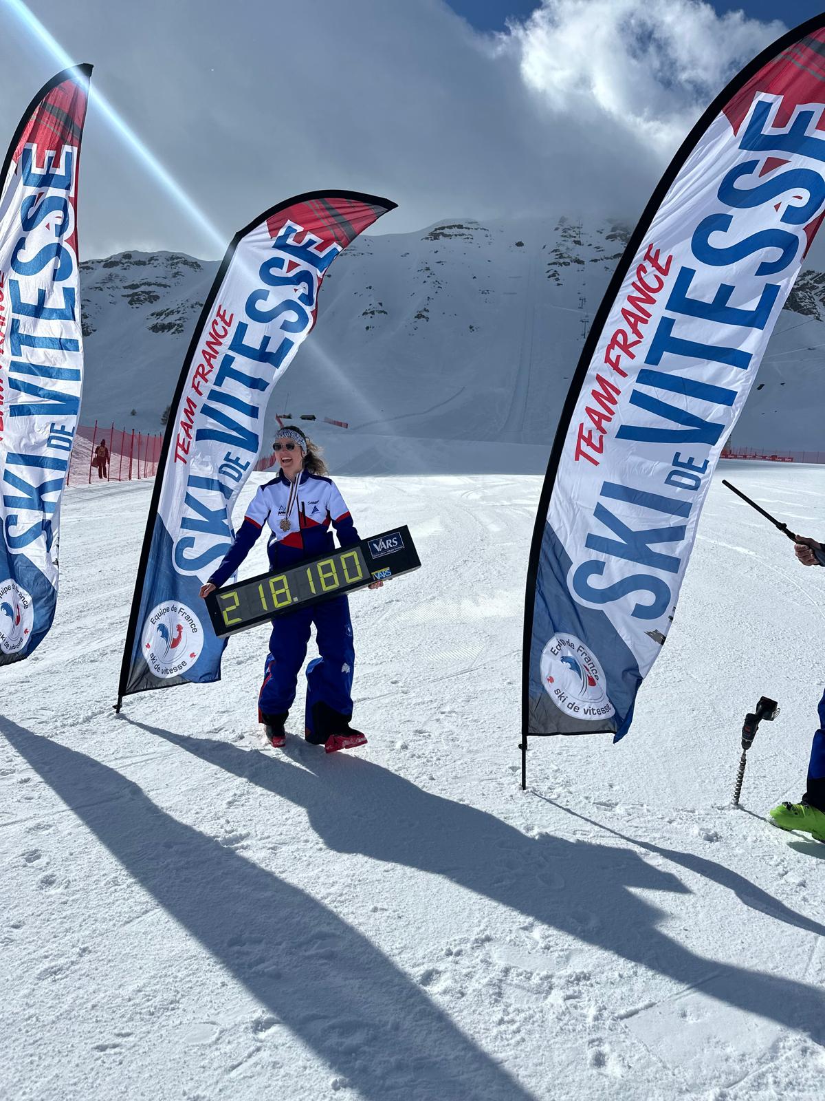 Ludivine qui a intégré l’équipe de France B cette année après avoir raccroché les skis pour les études, avait tout à apprendre et venait acquérir de l’expérience avec l’utilisation des tenues et matériels spécifiques.